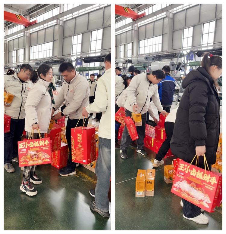 On February 9th, Spring Festival benefits were distributed simultaneously at factories and company offices. A barrel of peanut oil, a bag of mixed grains, a portion of tiger-skin chicken feet, a case of orange juice... These seemingly ordinary items carry the company's care and gratitude for every team member. They are not merely holiday goods, but tokens of recognition and appreciation.